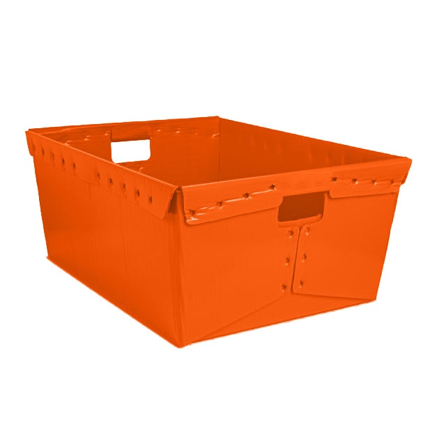 Easy to handle sturdy design, standard plastic corrugated plastic tote offers a long-term reusable solution.